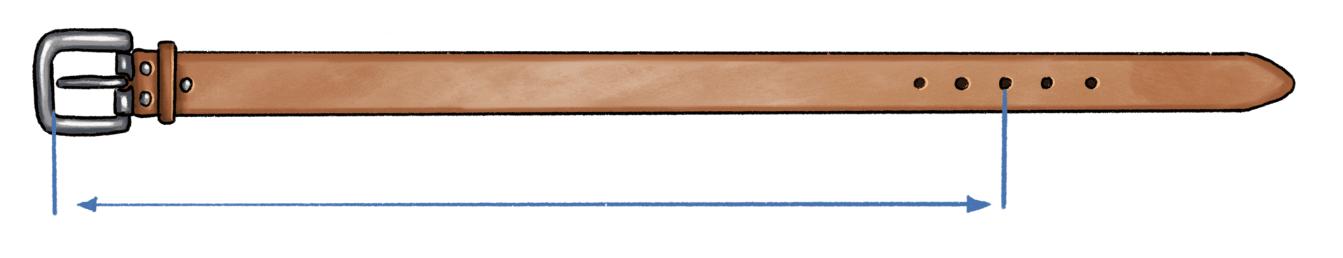 Die genaue Gürtellänge misst man von der Innenkante der Gürtelschnalle bis zum regelmäßig benutzten Loch.
